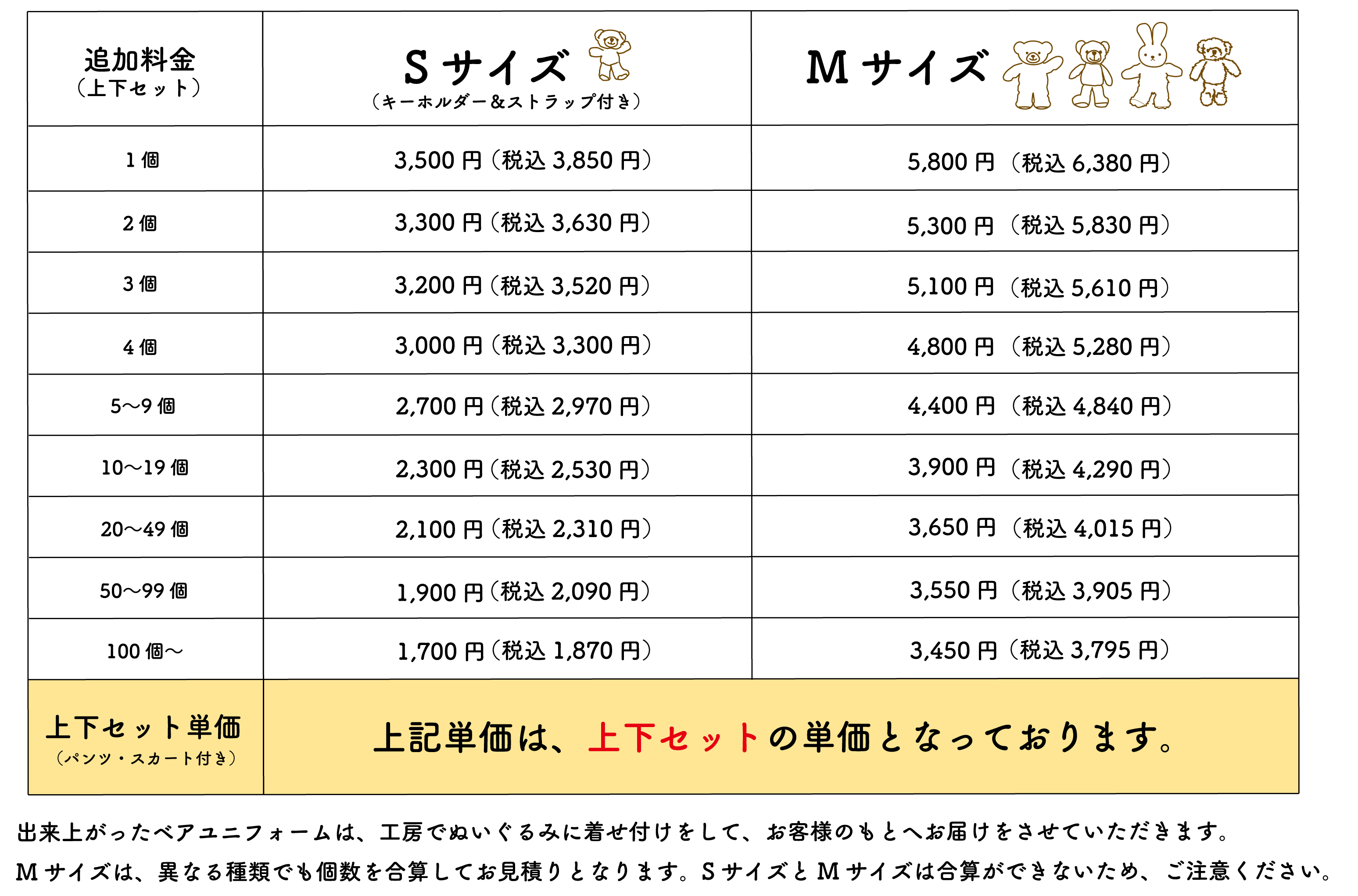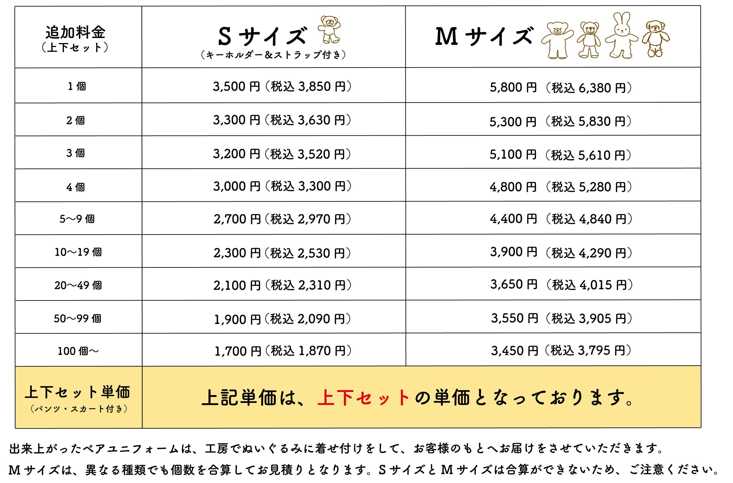・料金は、ぬいぐるみ1体+ユニフォームの単価になります。