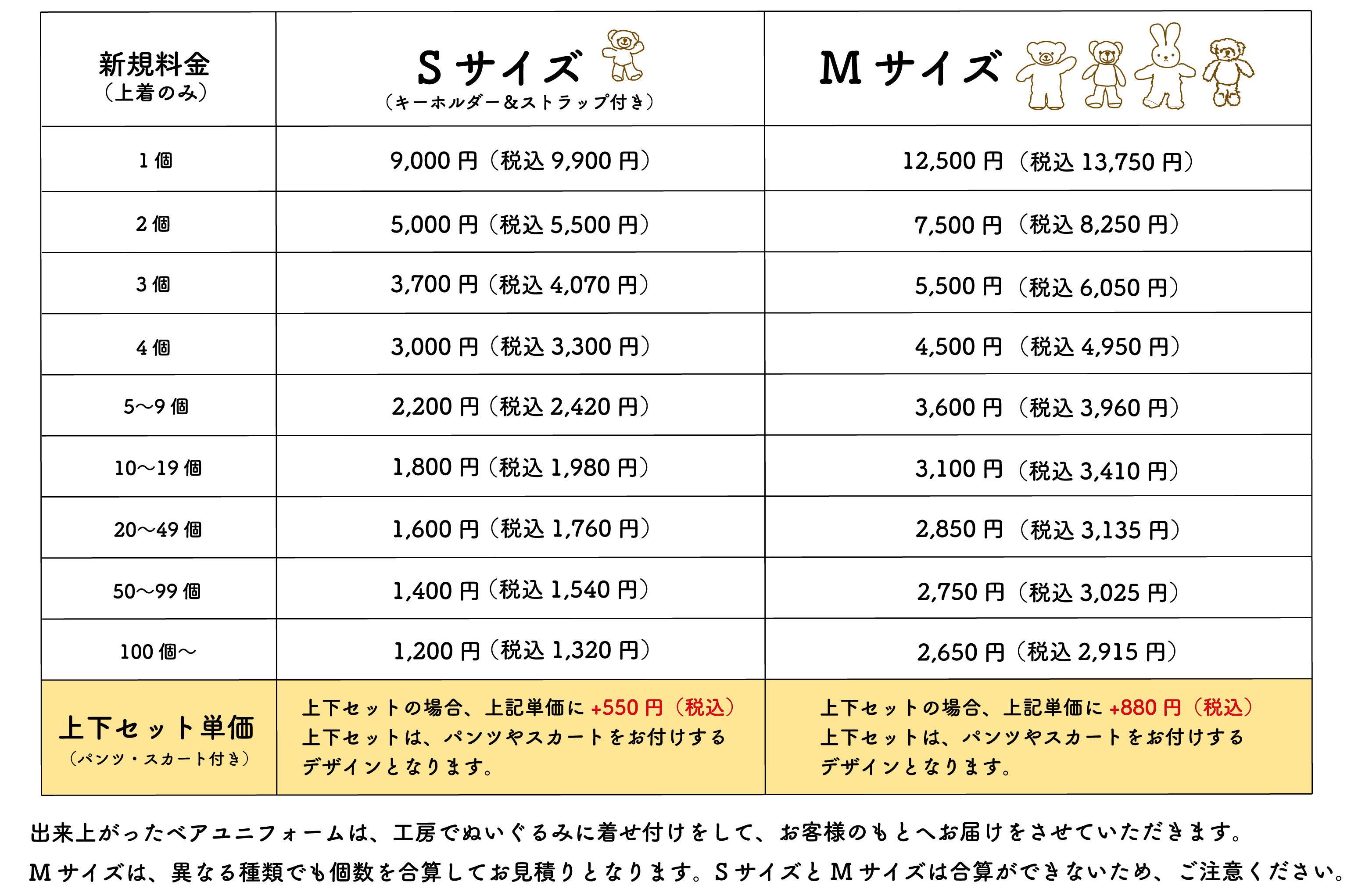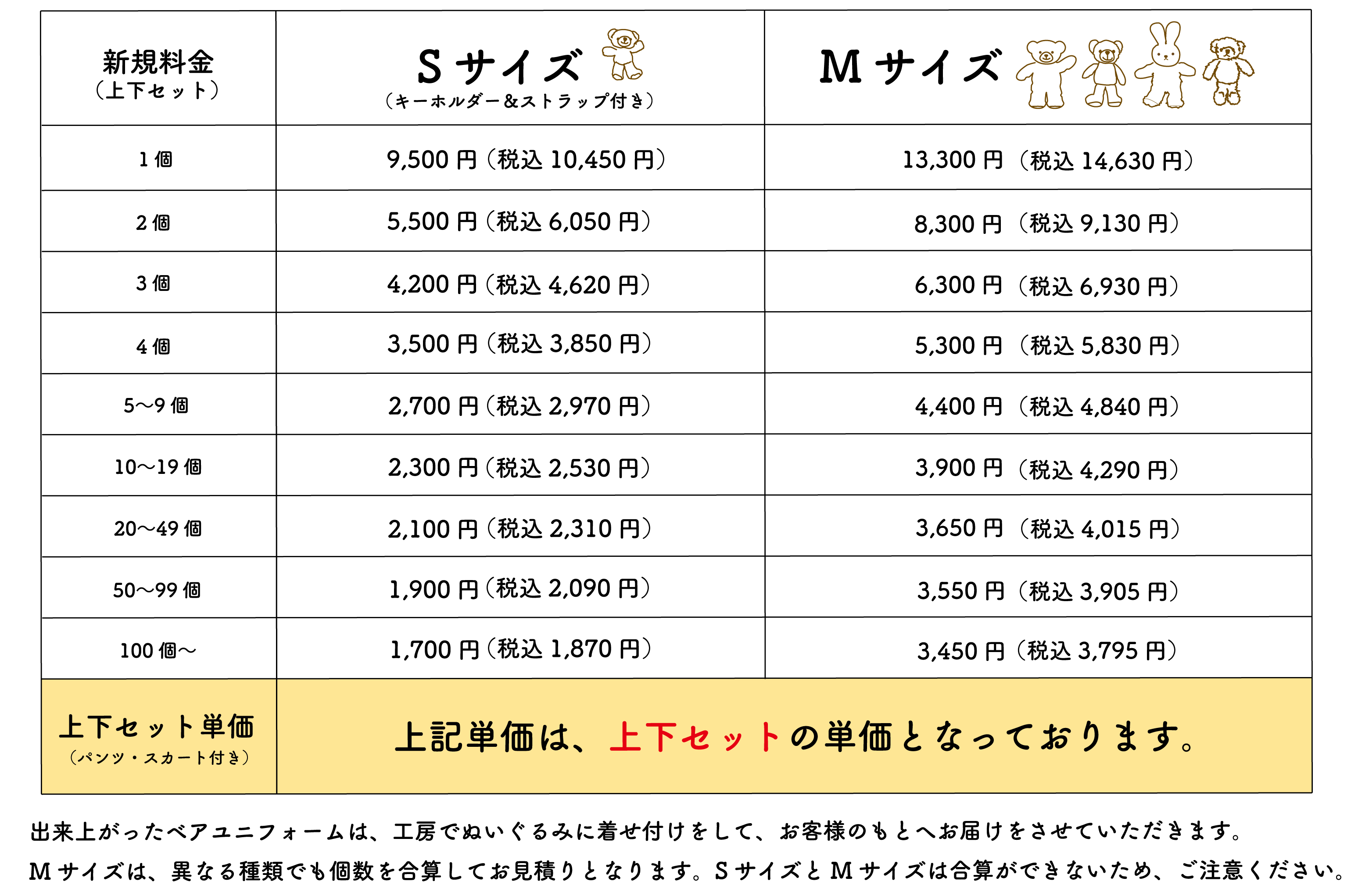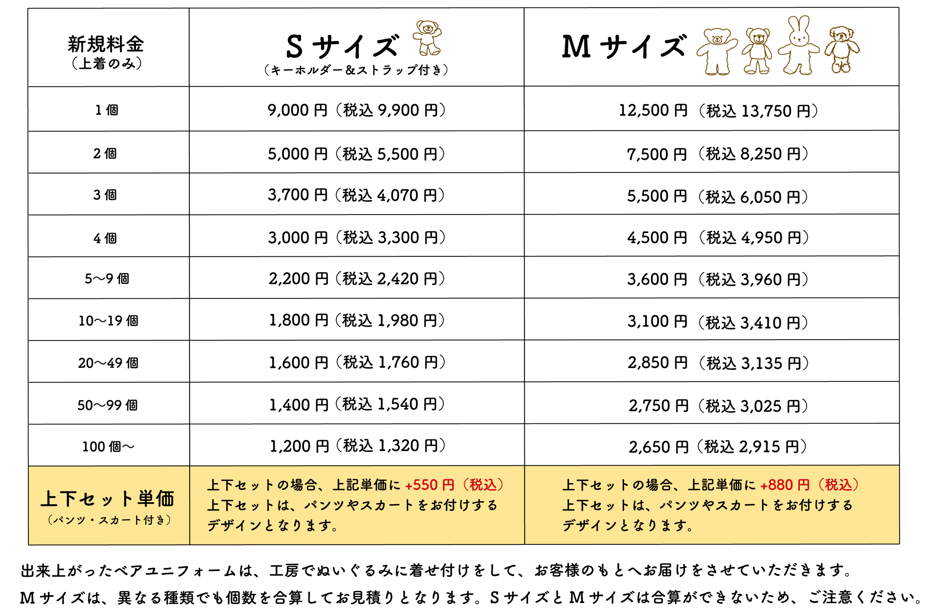 ・料金は、ぬいぐるみ1体+ユニフォームの単価になります。