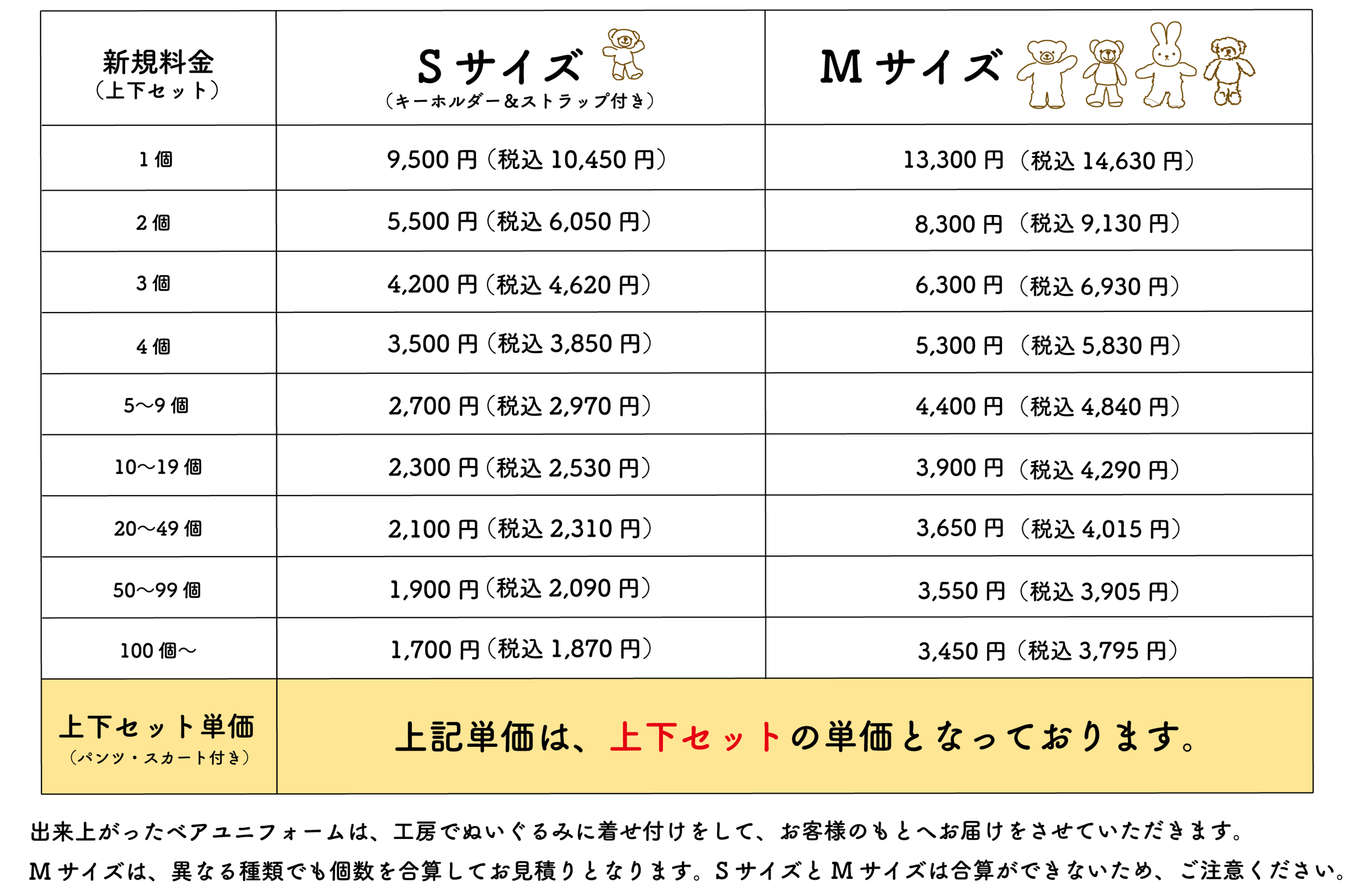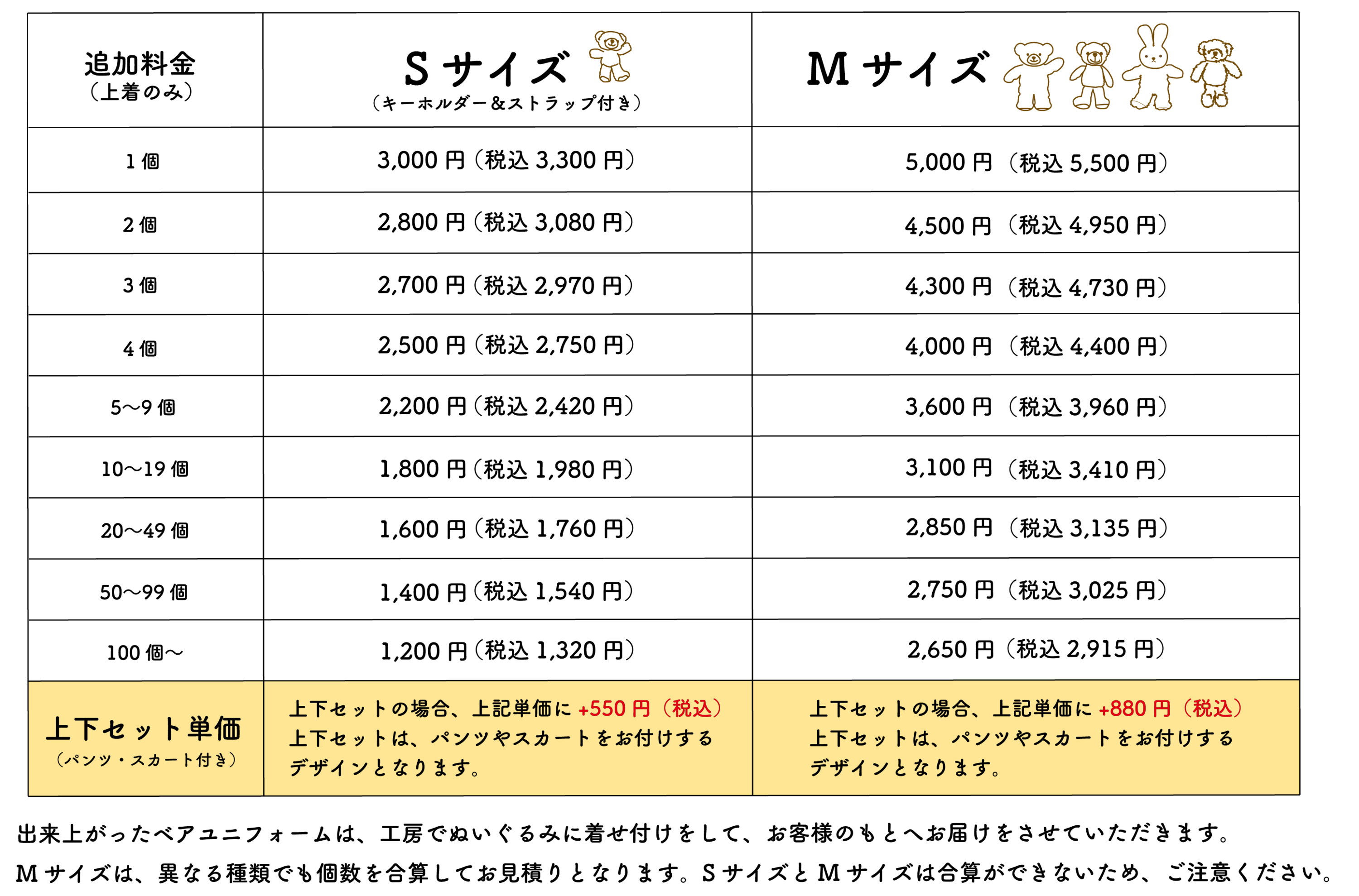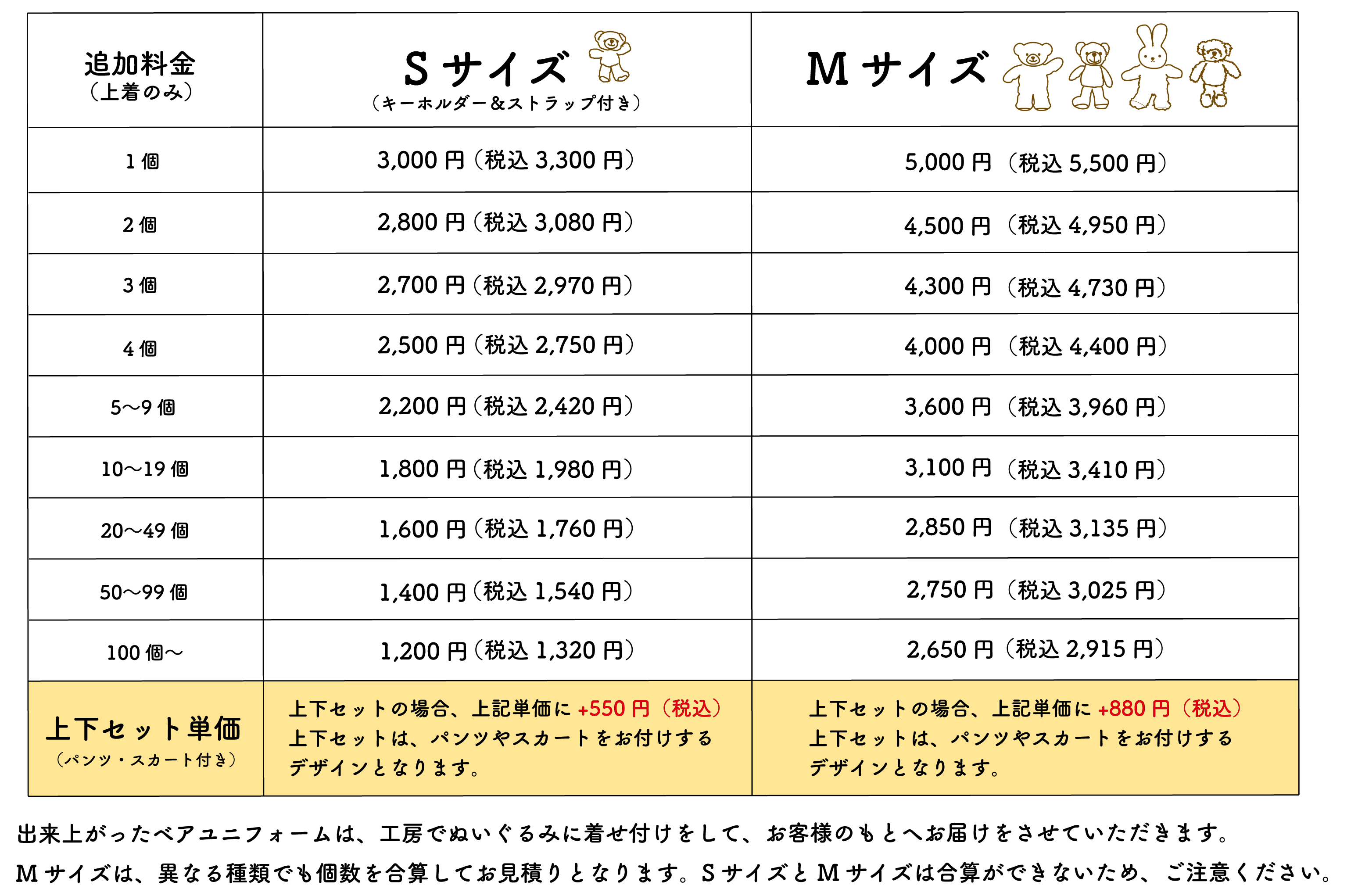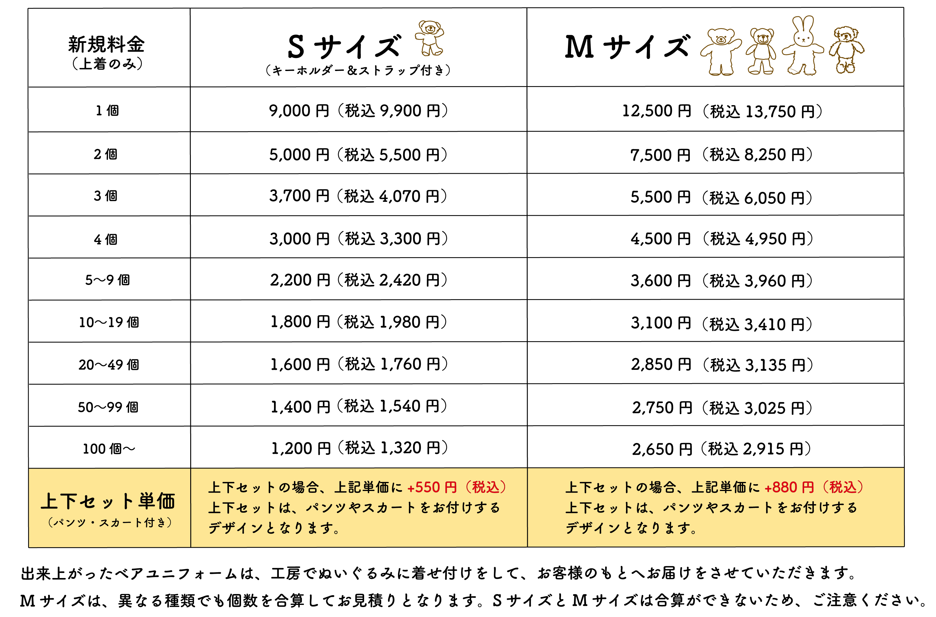 ・料金は、ぬいぐるみ1体+ユニフォームの単価になります。